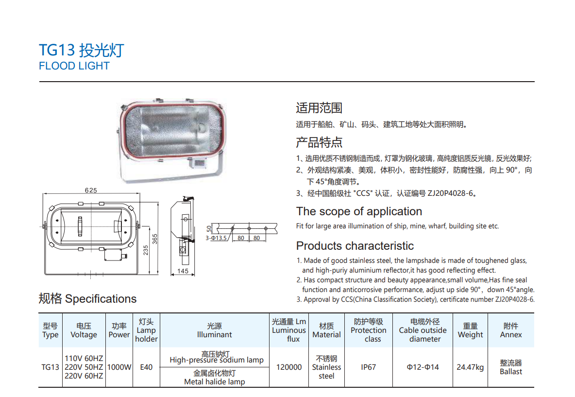 • Product Name: JLUX TG13 Marine Offshore Floodlight