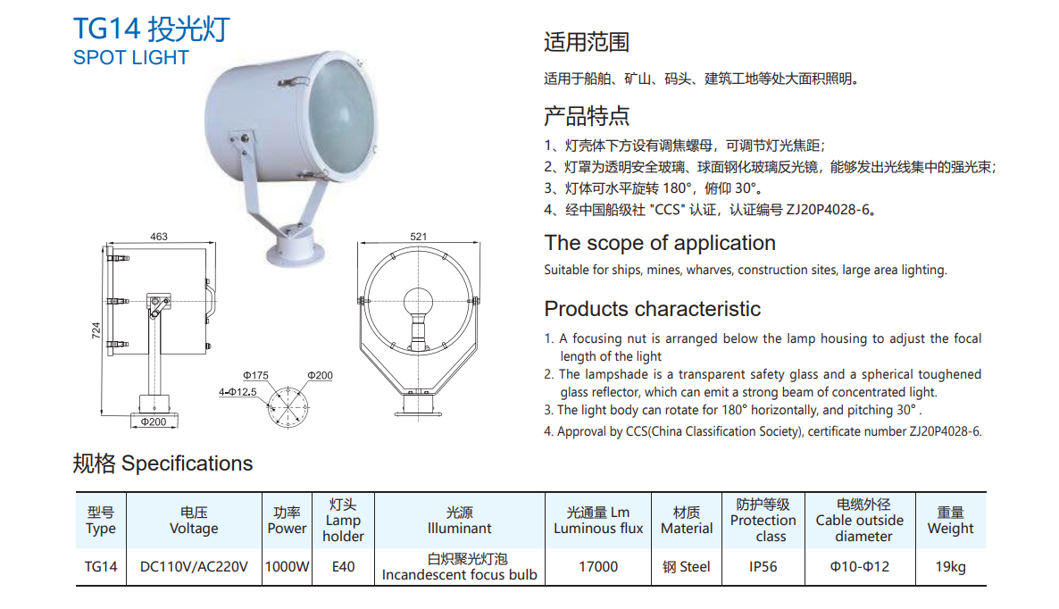• Product Name: JLUX TG14 Marine Offshore Spotlight