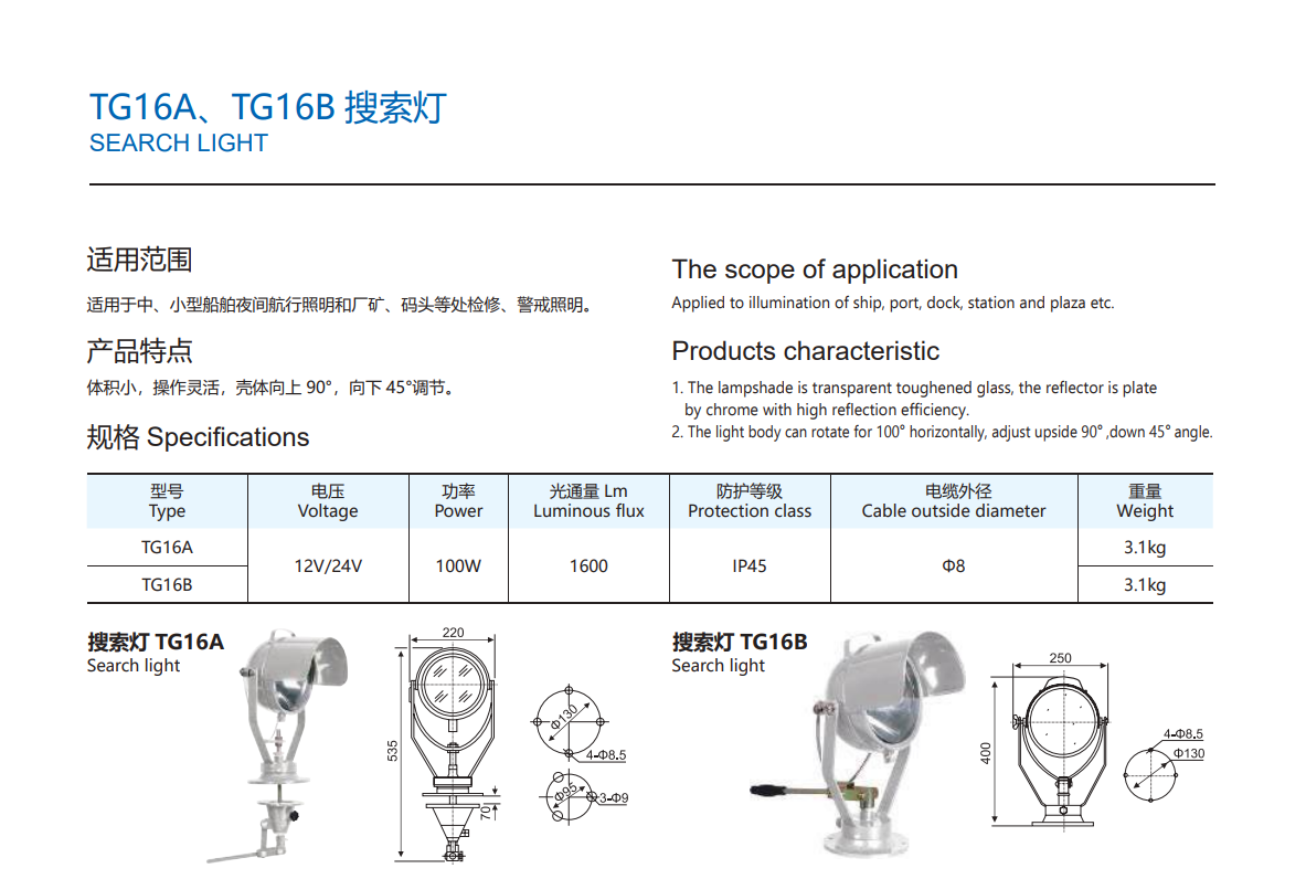 • Product Type: Marine Search Light