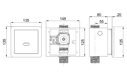 MRX6529AB Morix Recessed Box Type Sensor WC Flush Valve With Override Button. Size : 135mm x 135mm Code : MRXSSU6213AB250800