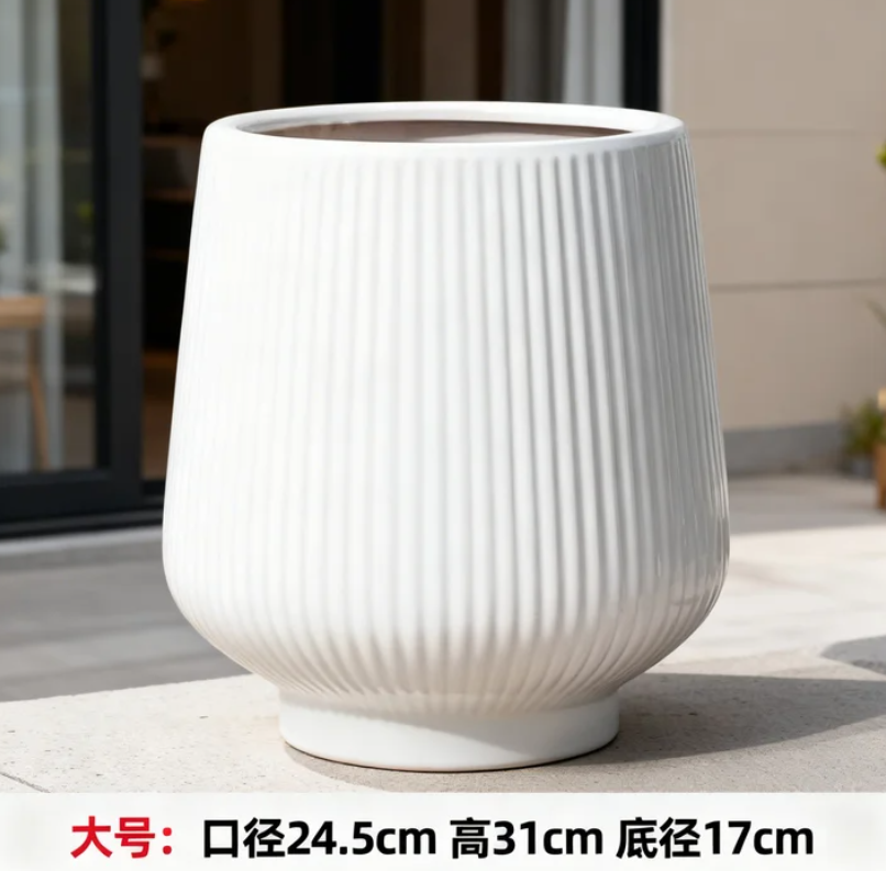 Potco Base Supply Products Ceramic Flower Pot Wholesale PC1247-19530-2 Flower Pot Ceramic Wholesale Household White Simple Extra Large Living Room Indoor Floor 陶瓷花盆 家用白色简约款 超大号 客厅室内落地式花盆
