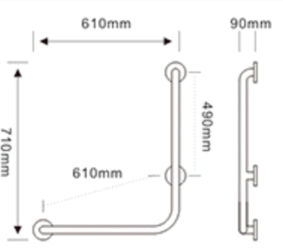 IT-JY-3333 / IT-JY-3333/LS Itto Chrome Finishig / Matt Finishing L-shape Grab Bar. Size : W610mm x H710mm SKU : ITGBRJY3333-30400