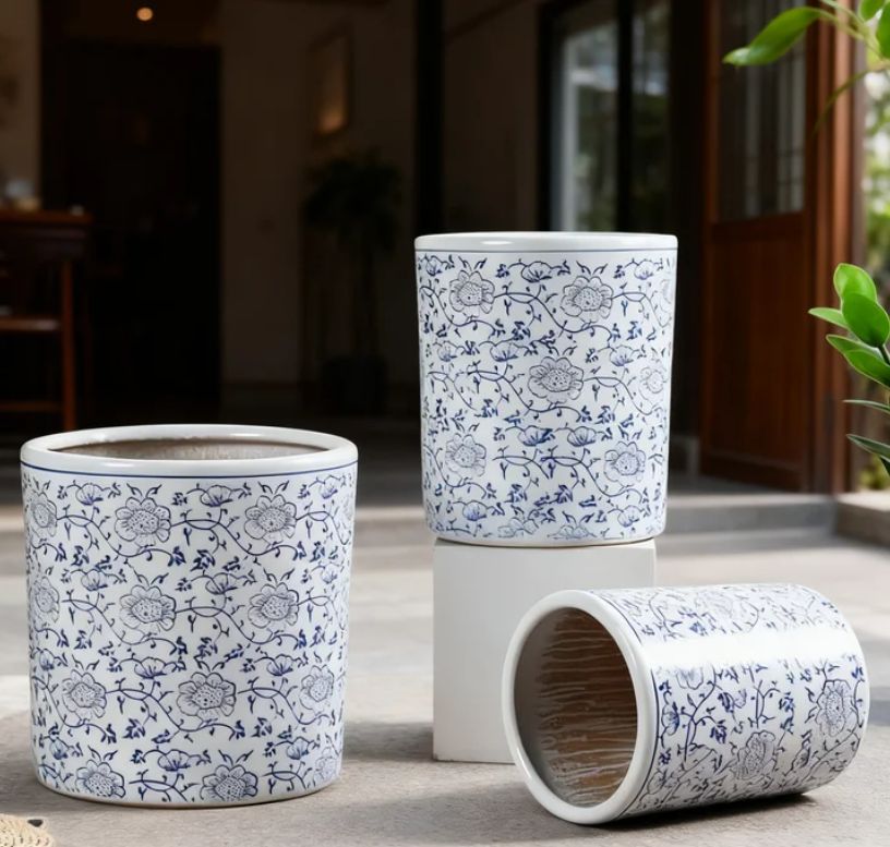 Potco Base Supply Products Affordable Flower Pots & Planters Wholesale Malaysia PC1247-19854 Ceramic Flower Pots For Home Use Chinese Blue And White Porcelain Straight Extra Large Caliber Special Plant Pots 家用陶瓷花盆 中式青花瓷 直筒款 超大口径 特制植物花盆