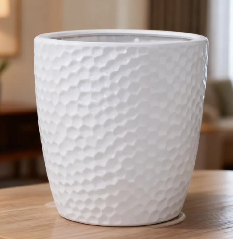 Potco Base Supply Products Plant Pots Variety Of Styles Wholesale Malaysia PC1247-19722 White Ceramic Flowerpot Nordic Home Simple Extra Large Floor Basin Personalized Scales 白色陶瓷花盆 北欧简约风 家用超大号落地花盆 个性纹理设计