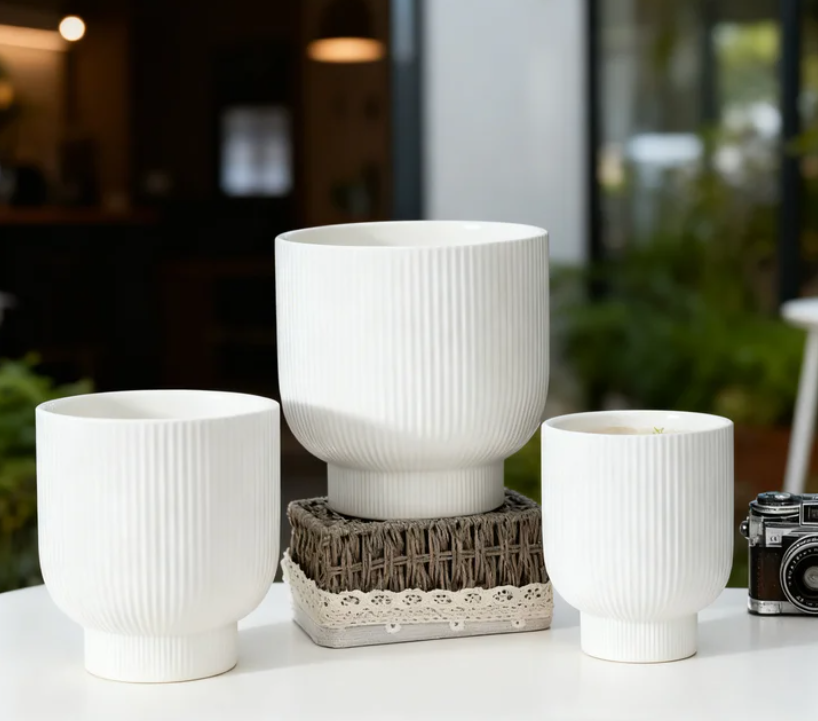 Size: L: 30 cm H x 30 cm D , M:27cm H x 24cm D S: 24 cm H x 17 cm D Set Of 3 In set Elevate your garden or indoor space with our Ceramic Pot from the Elegant Ceramic Pot collection. This me...