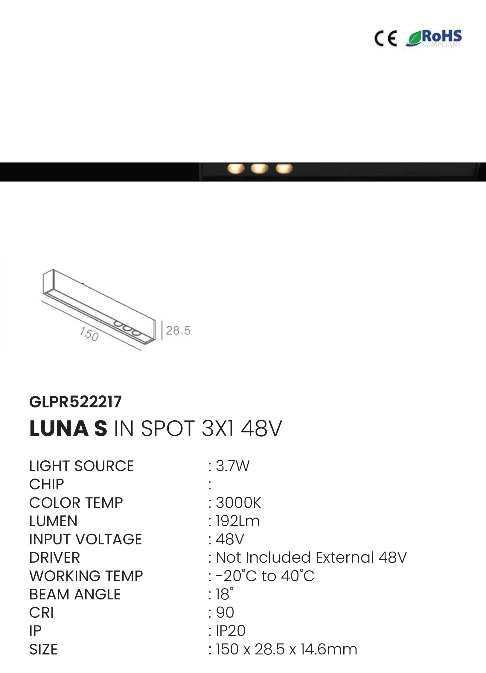 LUNA S IN SPOT 3X1 48V (GLPR522217)