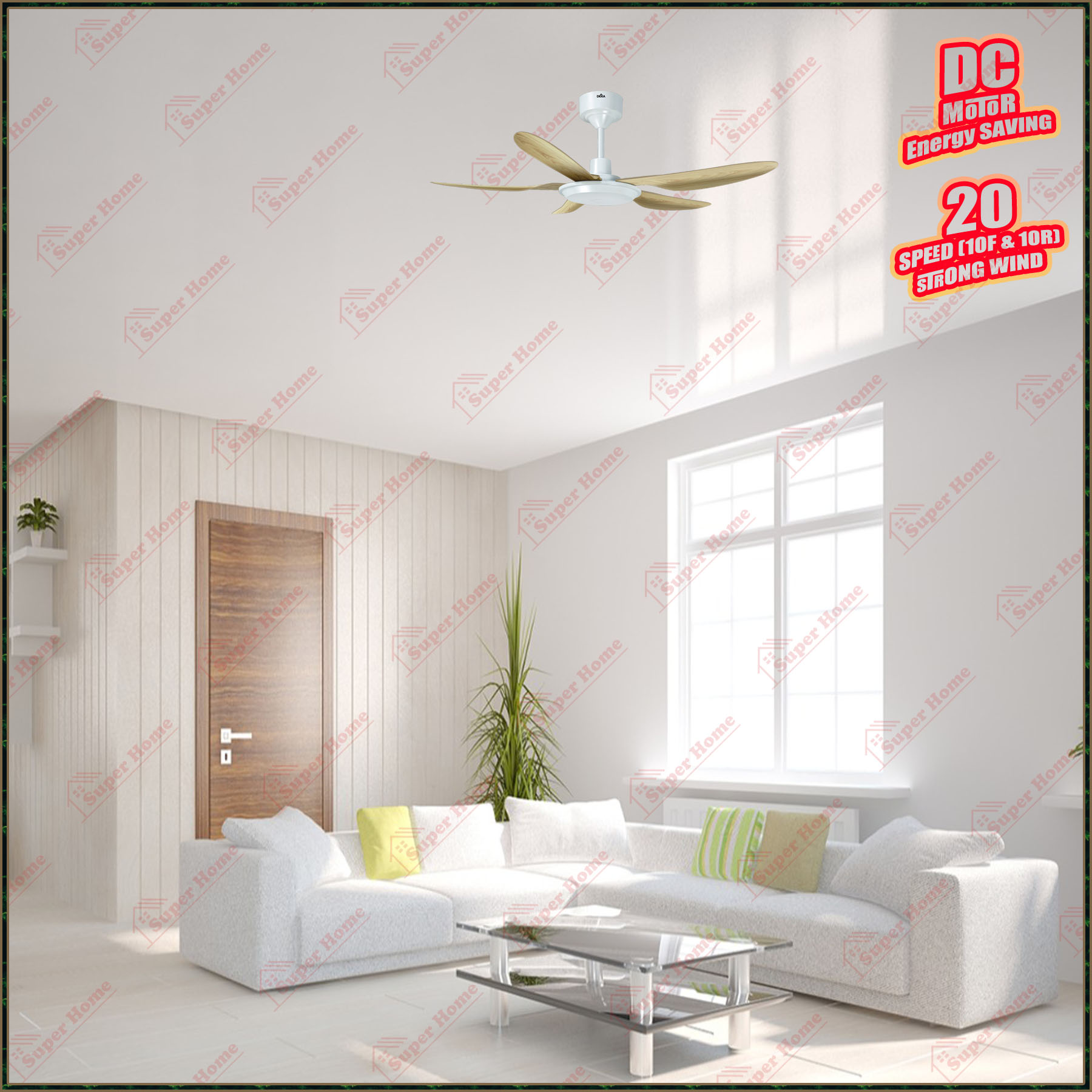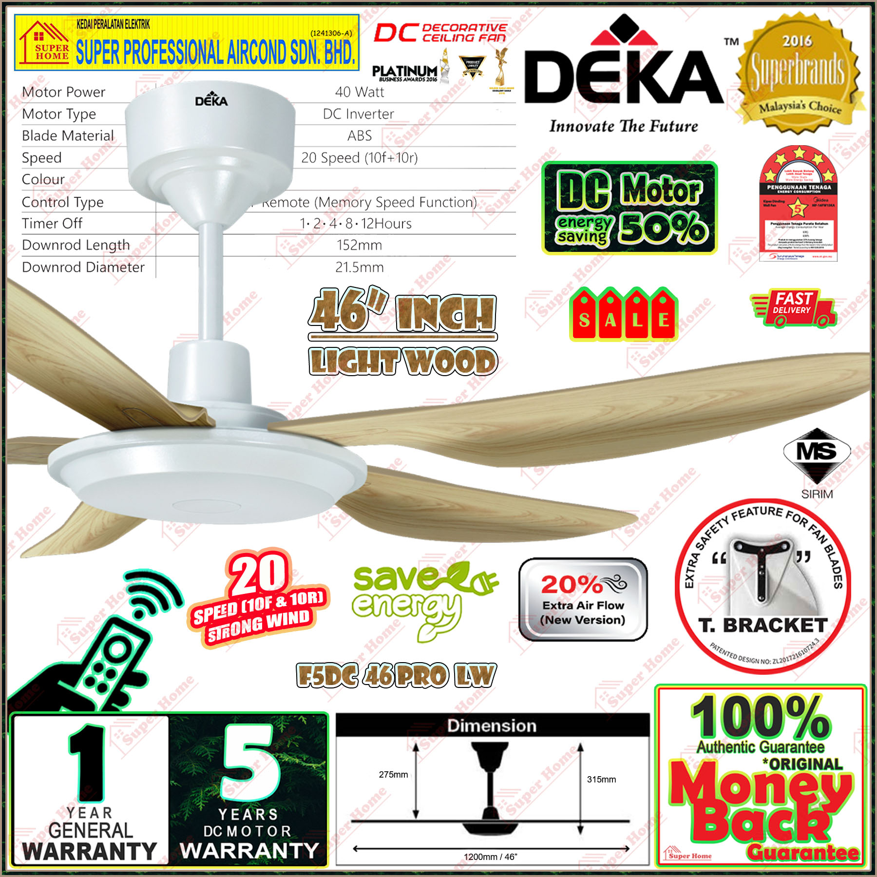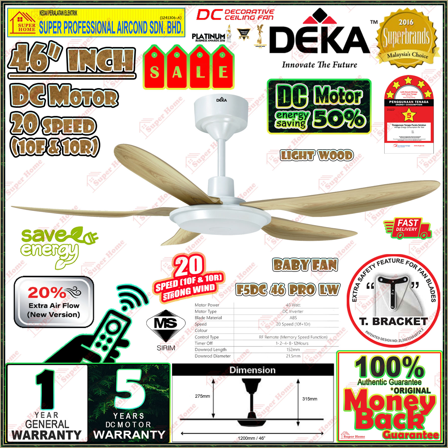 Super Professional Aircond Sdn Bhd Products Deka Baby Fan F5DC 46 PRO LW (Light Wood) 46 Inch Remote Control DC Motor Ceiling Fan 5 Blades Light Wood